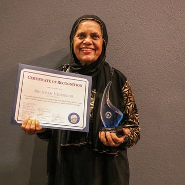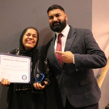 M. Sharaf Haseebullah received the Lifetime Achievement Award, while the Community Leader Award was presented to Imam Fateen and Trista Miller. The Humanitarian Award was given to the Suba family for their unwavering dedication to service, and the Upcoming Humanitarian Award was presented to Mujtaba Shahzad. The Unsung Hero Award was dedicated to Steven Acheson.
